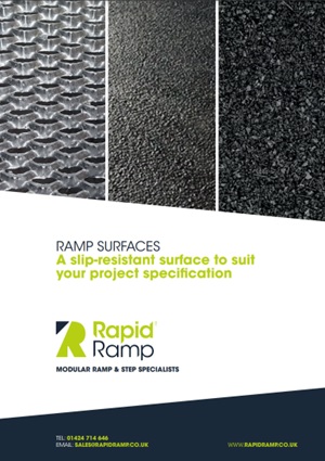 A GRP ramp refers to a ramp system that features a GRP (Glass Reinforced Plastic) surface for added strength and durability. This composite material, made from plastic reinforced with glass fibres, is known for its lightweight nature, high durability, and resistance to corrosion. We offer modular ramps with a GRP surface that provides excellent slip resistance, making them ideal for high-traffic public areas such as schools and train stations.
