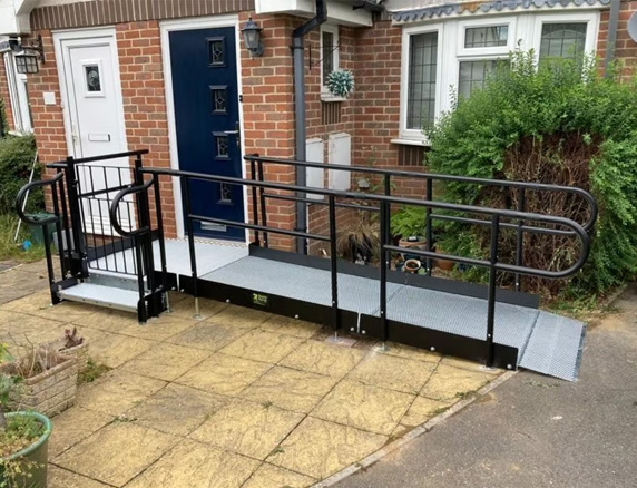 For compliance with Building Regulations, a dwelling ramp can accomplish a minimum gradient no less than 1:12 (4.7 degrees) and achieve a minimum width of 900mm, as stated in Documents M and K of the Building Regulations. >Further Information On Ramp Regulations For Residential Buildings<