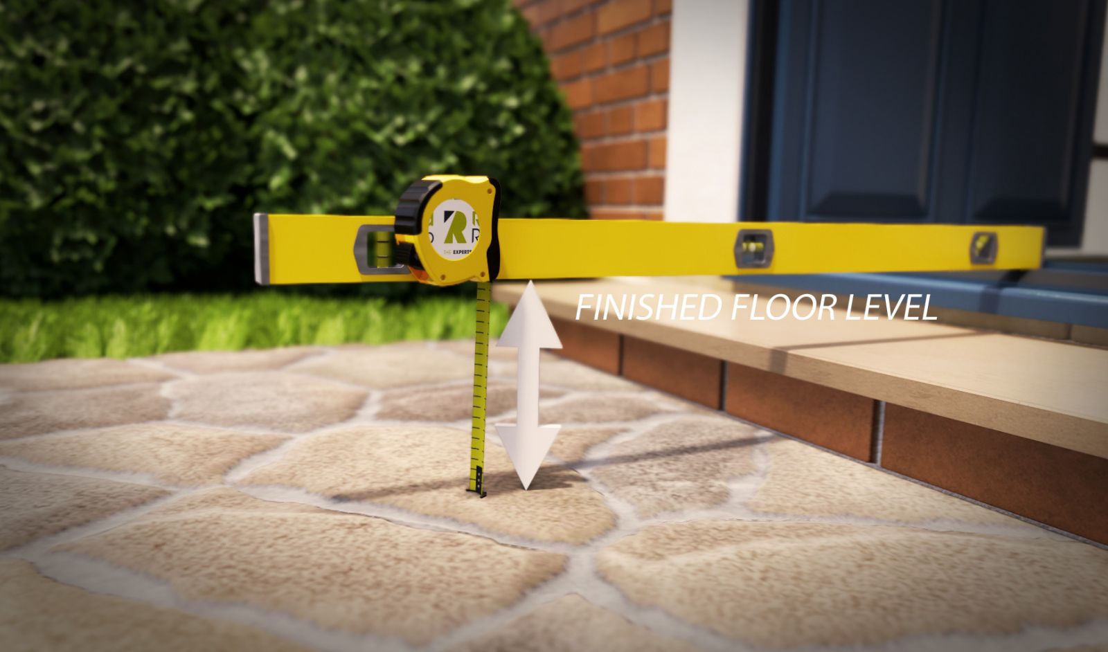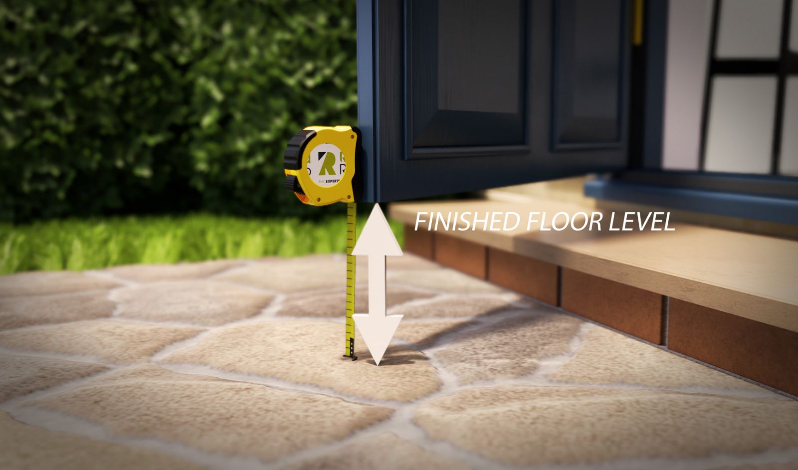 Take a measurement from the ground level to the bottom of the door using a measuring tape and spirit level (optional).