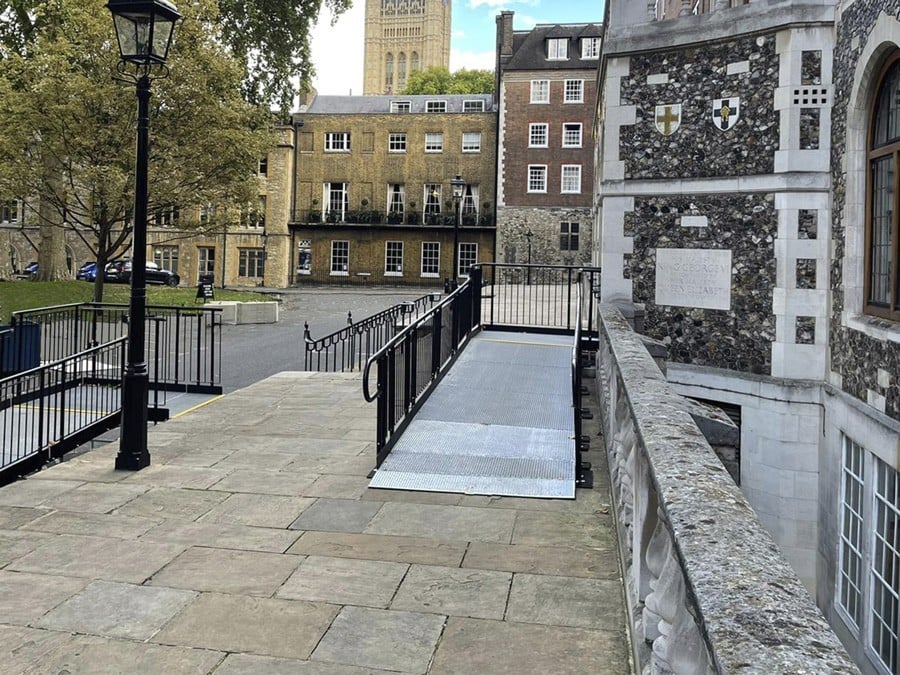 Our temporary modular ramp provides short-term wheelchair access to various buildings, including prefabricated cabins, marquees, modular offices, and classrooms.